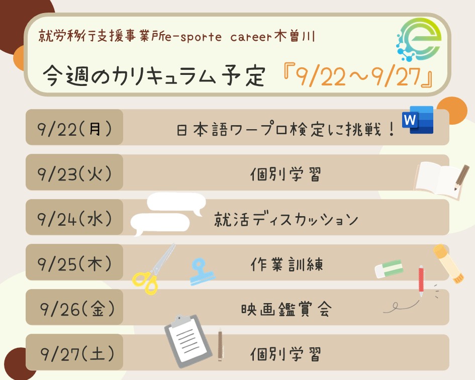 💬今週のカリキュラム紹介【9/22~9/27】🎥