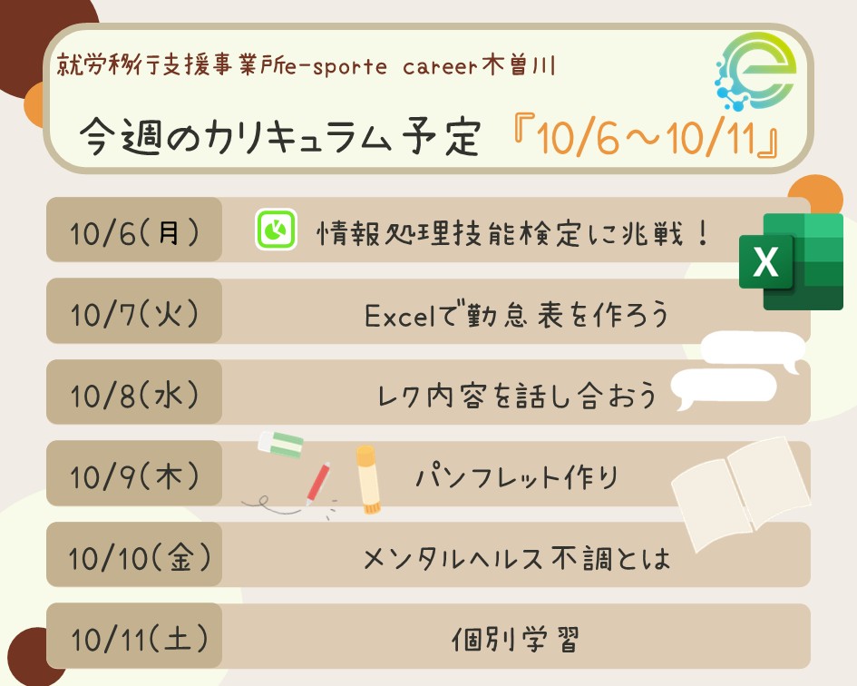 🧑💻今週のカリキュラム紹介【10/6~10/11】💬