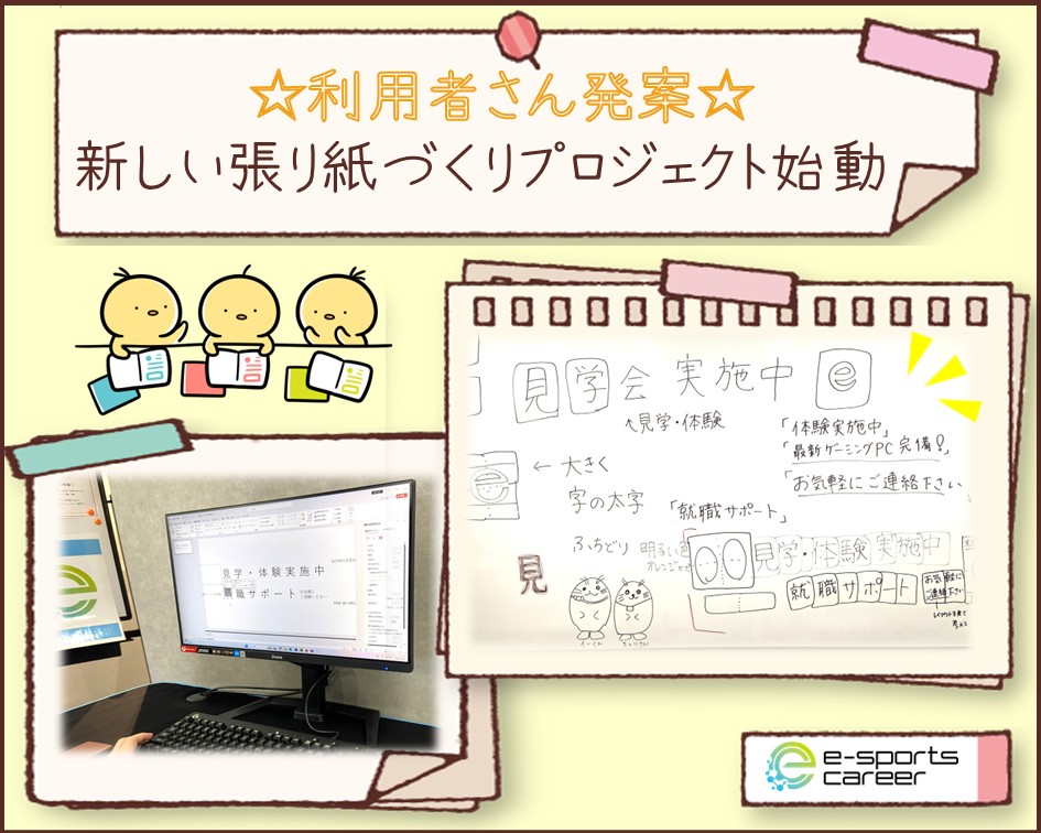 今日は少人数での実施でしたが、来週は他の利用者さんも加わり、さらに魅力的な張り紙づくりが進みそうです🤗