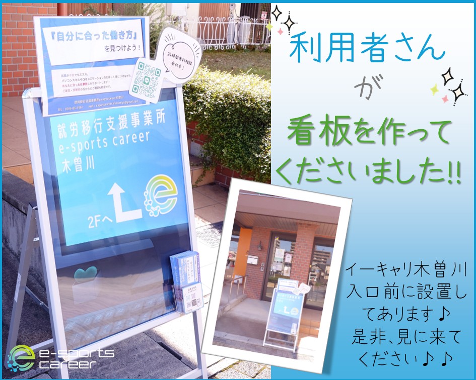 利用者さん制作!イーキャリ木曽川の新しい看板が完成しました✨