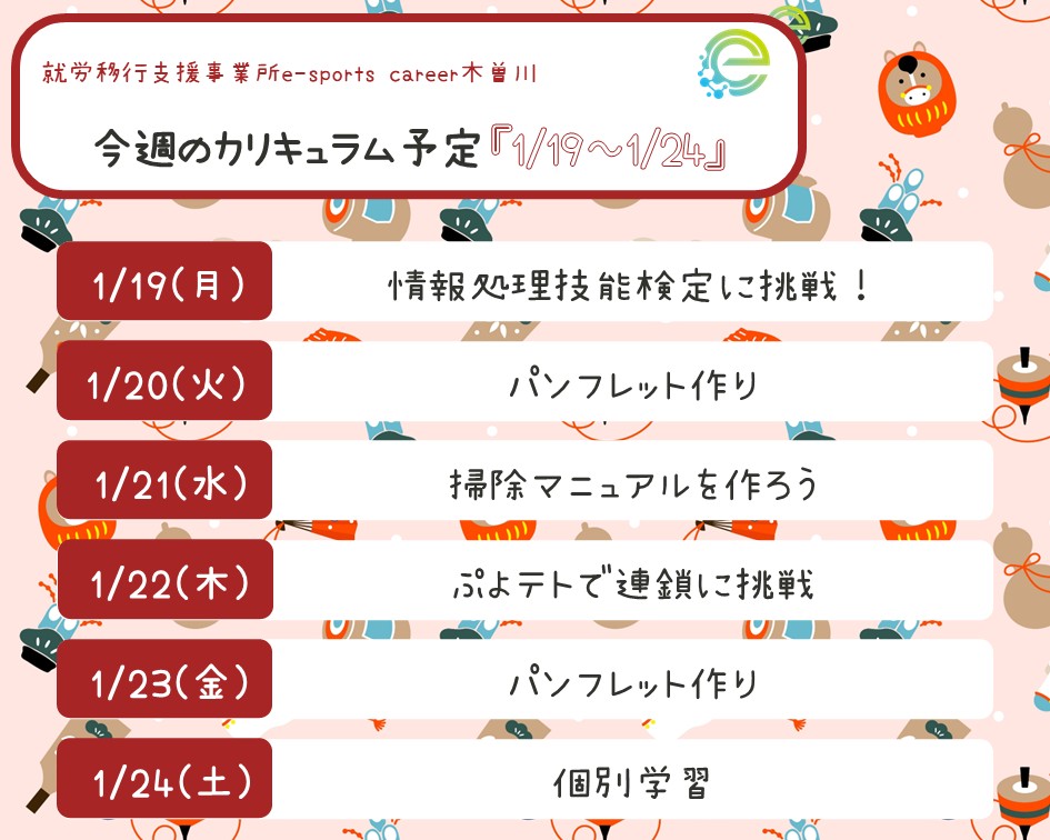 🎮今週のカリキュラム紹介【1/19~1/24】📖