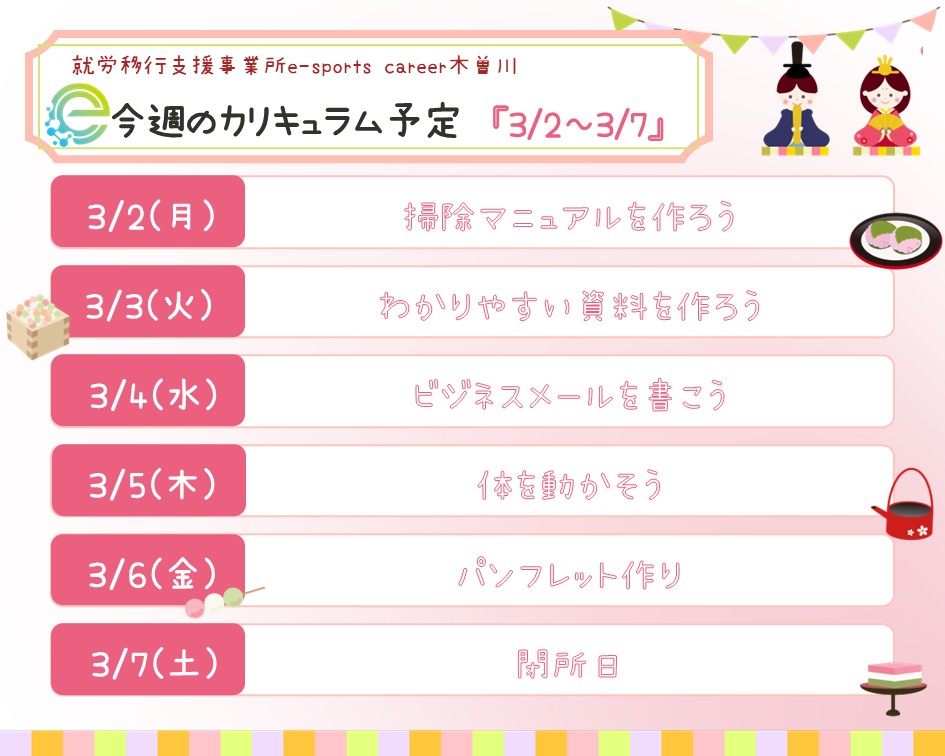 今週のカリキュラム予定≪3/2~3/7≫