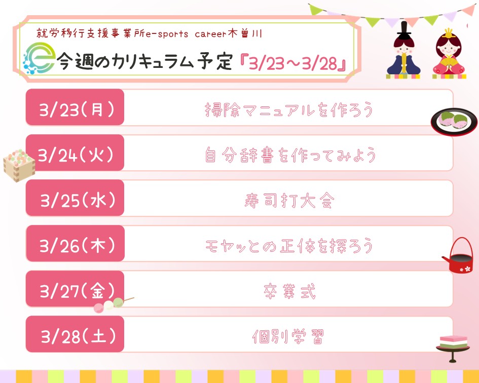 🍣今週のカリキュラム紹介【3/23~3/28】📄