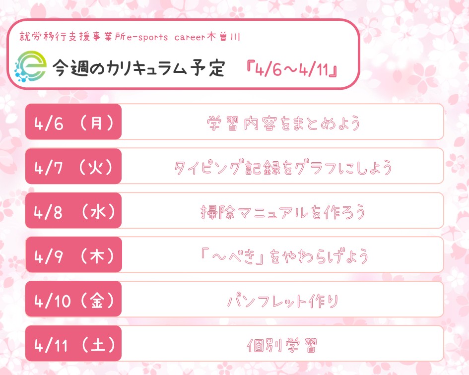 今週のカリキュラム予定≪4/6~4/11≫